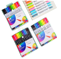 Zestaw markerów akwarelowych dostępny jest w wariantach: 12, 24, 48 i 60 sztuk. Każdy marker posiada dwie końcówki – cienką (0,4 mm) oraz pędzelkową (1–2 mm), dzięki czemu umożliwia tworzenie zarówno precyzyjnych konturów, jak i efektów akwarelowych czy cieniowań.